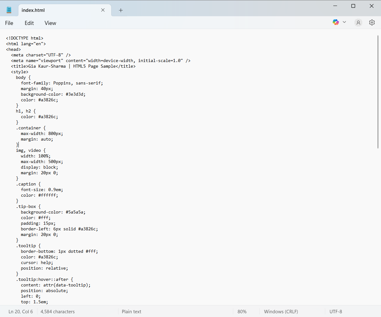 Here’s the source code. I matched the colors and fonts on the page to my portfolio theme and added alt text for accessibility.