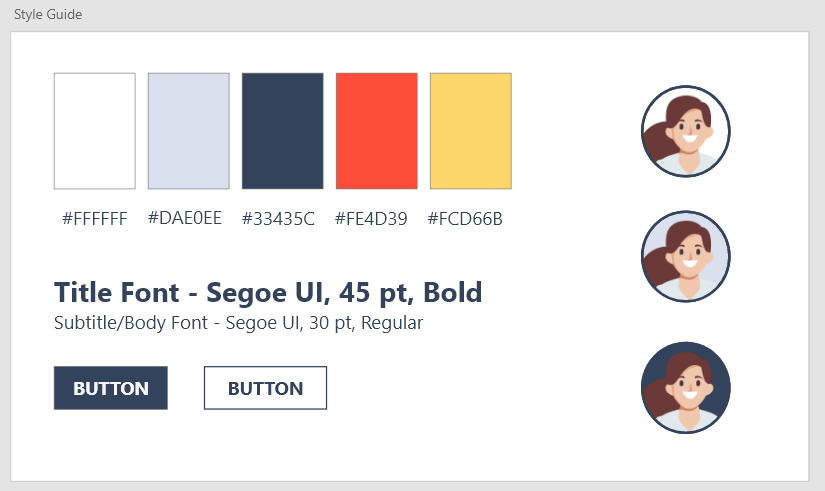 I started with a style guide to narrow down the colors, font sizes, and other design elements, and this allowed me to remain consistent while building out the individual slides.